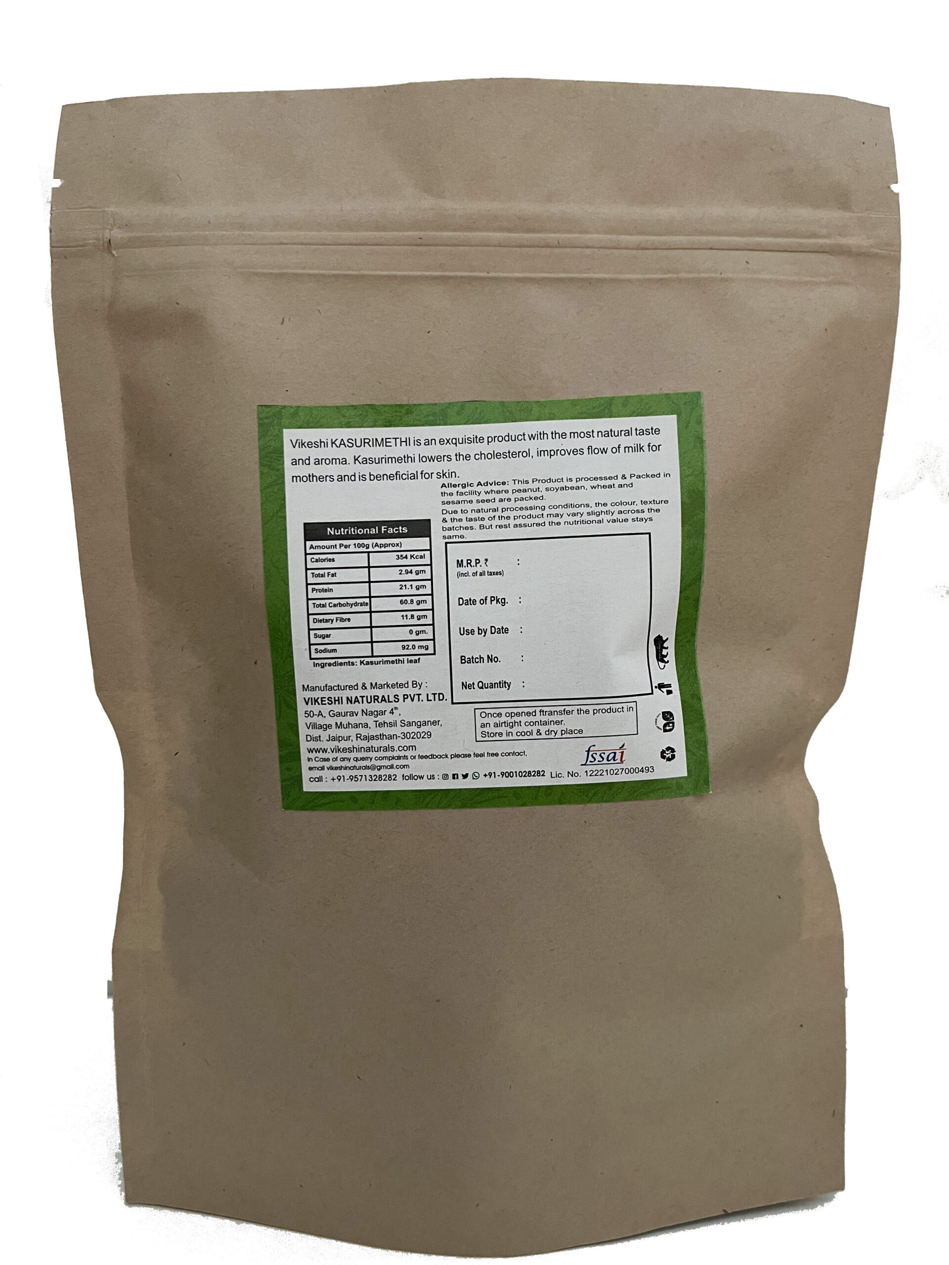 Vikeshi kasuri methi is an exquisite product with the most natural taste and aroma. Kasuri methi lowers the cholesterol, improves flow of milk for mothers and is beneficial for skin.