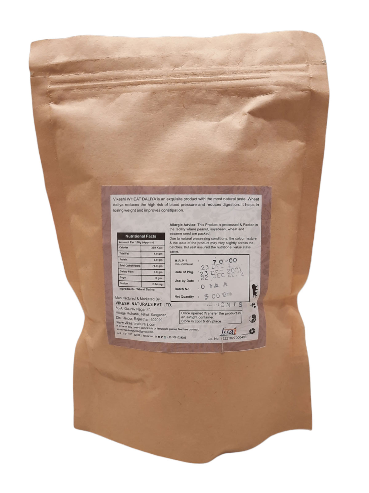 Vikeshi Wheat Daliya is an exquisite product with the most Natural taste. Wheat daliya reduce the high risk of blood pressure and reduce digestion. It helps in loosing weight and improves constipation.